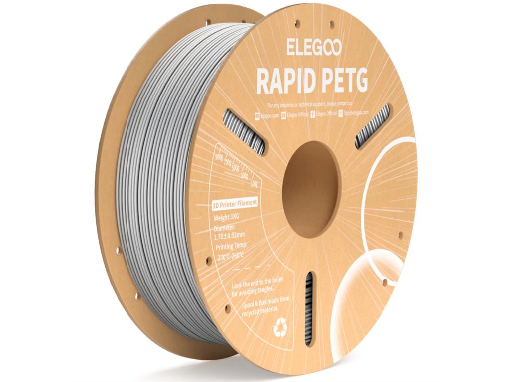 ELEGOO Rapid PETG je materiál, který kombinuje snadnost tisku jako u PLA s mechanickou pevností a odolností PETG. Určen pro funkční díly, prototypy, venkovní aplikace nebo jakýkoliv projekt, kde je potřeba rychlého výkonu + vyšší odolnosti vůči nárazům, povětrnosti či chemikáliím.