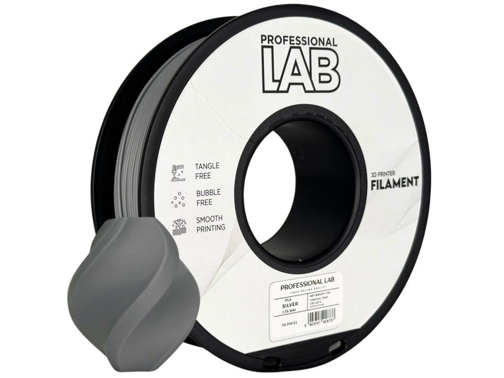 Professional Lab PLA v stříbrném provedení kombinuje vizuální dojem leštěné oceli s prémiovou kvalitou výroby – metalický stříbrný efekt v kombinaci s konzistentní tolerancí ±0,03 mm a výbornou mezivrstevní adhezí přináší výtisky které vypadají profesionálně a zároveň mají předvídatelné mechanické vlastnosti. Stříbrná PLA je oblíbenou volbou pro sci-fi i průmyslové projekty.