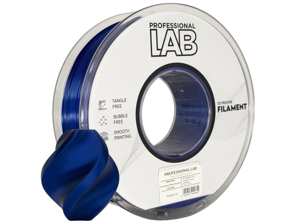 Professional Lab PLA Silk Vícebarevný šepot bouře je filament který zachytil dramatiku přírody před bouří – tmavý přechod bouřkových tónů modré, šedé a fialové v kombinaci s hedvábným leskem Silk formulace vytváří výtisk s tajemnou a dramatickou atmosférou. Každý kus je vizuálně odlišný podle pozice na cívce a mění charakter s každou změnou osvětlení.
