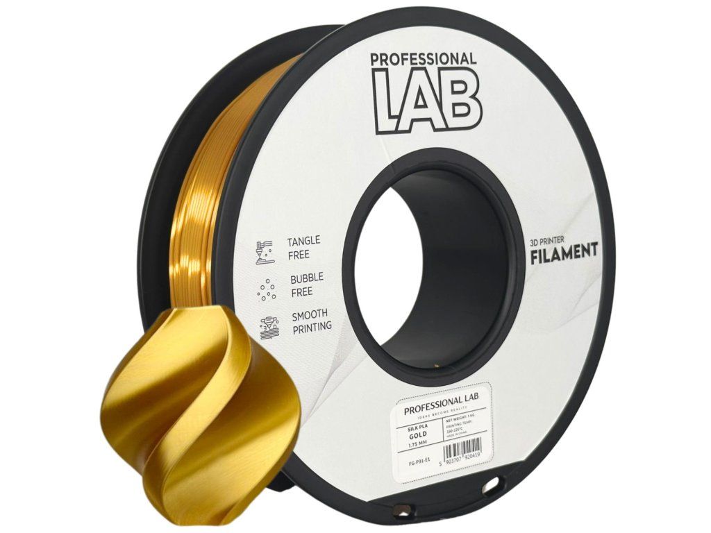 Professional Lab PLA Silk v zlatém provedení je královna celé palety – teplý zlatý lesk v hedvábném provedení vytváří výtisk který dýchá luxusem a elegancí. Na rozdíl od standardních zlatých filamentů má Silk varianta hloubku a živost která věrně napodobuje skutečné zlato při různých úhlech osvětlení a pohybu výtisku.